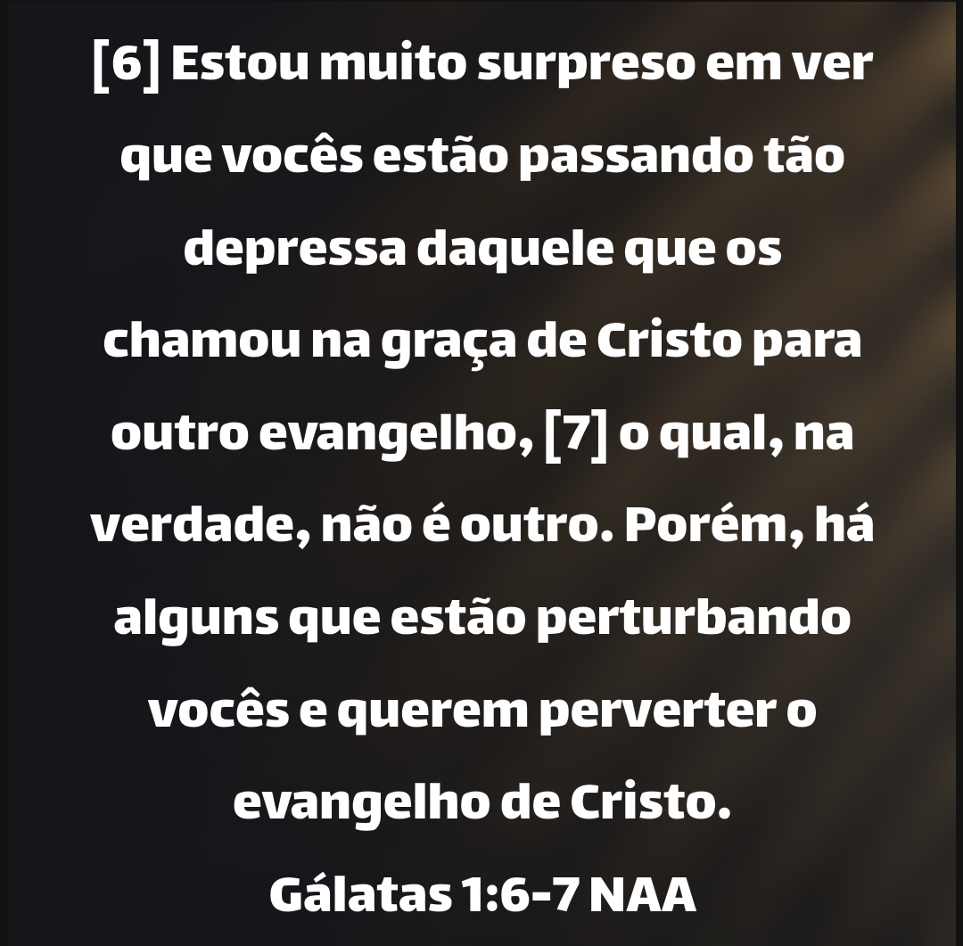 [6] Estou muito surpreso em ver que vocês estão passando tão depressa daquele que os chamou na graça de Cristo para outro evangelho, [7] o qual, na verdade, não é outro. Porém, há alguns que estão perturbando vocês e querem perverter o evangelho de Cristo.