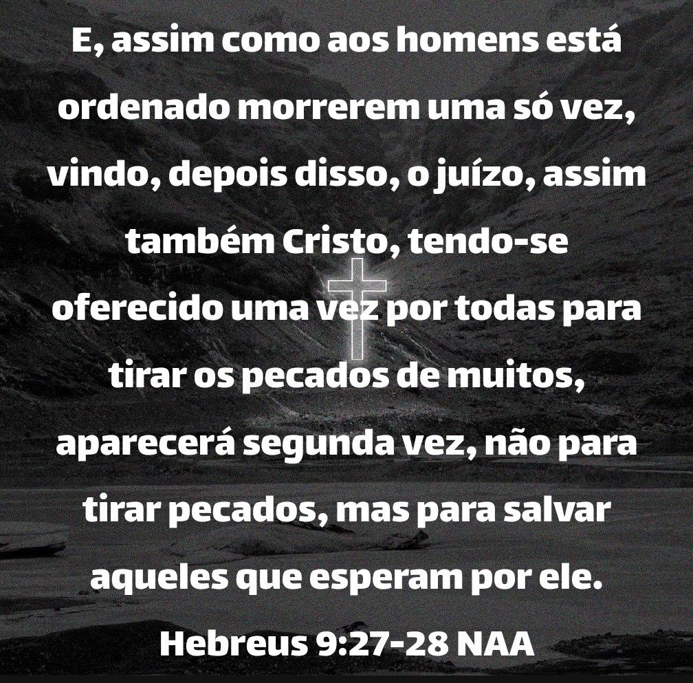 E, assim como aos homens está ordenado morrerem uma só vez, vindo, depois disso, o juízo, assim também Cristo, tendo-se oferecido uma vez por todas para tirar os pecados de muitos, aparecerá segunda vez, não para tirar pecados, mas para salvar aqueles que esperam por ele. Hebreus 9:27-28 NAA