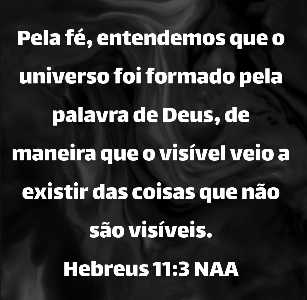 Pela fé, entendemos que o universo foi formado pela palavra de Deus, de maneira que o visível veio a existir das coisas que não são visíveis. Hebreus 11:3 NAA