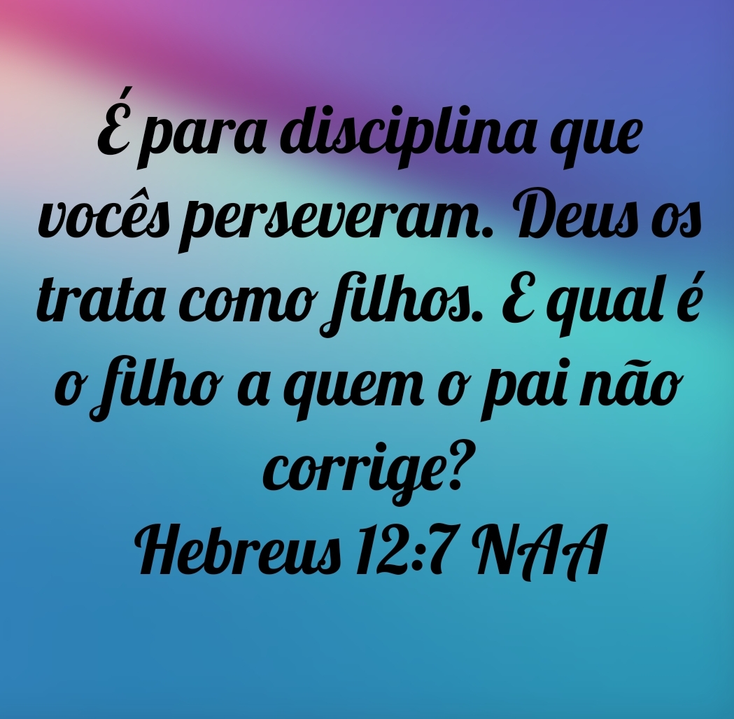 É para disciplina que vocês perseveram. Deus os trata como filhos. E qual é o filho a quem o pai não corrige? Mas, se estão sem essa correção, da qual todos se tornaram participantes, então vocês são bastardos e não filhos. Hebreus 12:7-8 NAA