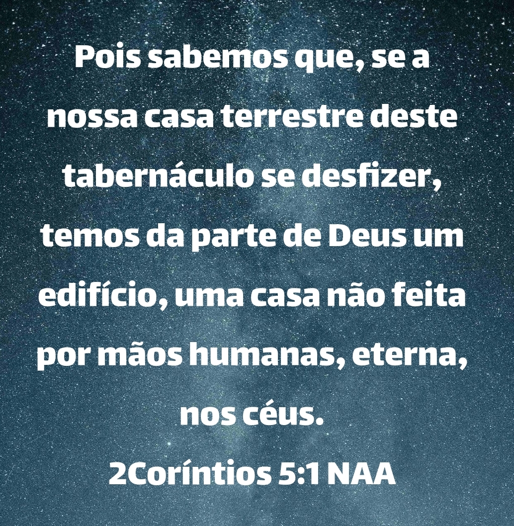 Pois sabemos que, se a nossa casa terrestre deste tabernáculo se desfizer, temos da parte de Deus um edifício, uma casa não feita por mãos humanas, eterna, nos céus. 2Coríntios 5:1 NAA