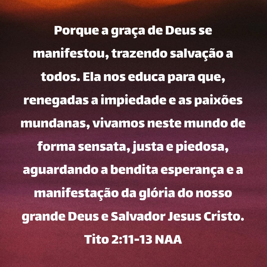 Mas quando se manifestou a bondade de Deus, nosso Salvador, e o seu amor por todos, ele nos salvou, não por obras de justiça praticadas por nós, mas segundo a sua misericórdia. Ele nos salvou mediante o lavar regenerador e renovador do Espírito Santo, que ele derramou sobre nós ricamente, por meio de Jesus Cristo, nosso Salvador, a fim de que, justificados por graça, nos tornemos seus herdeiros, segundo a esperança da vida eterna. Tito 3:4-7 NAA