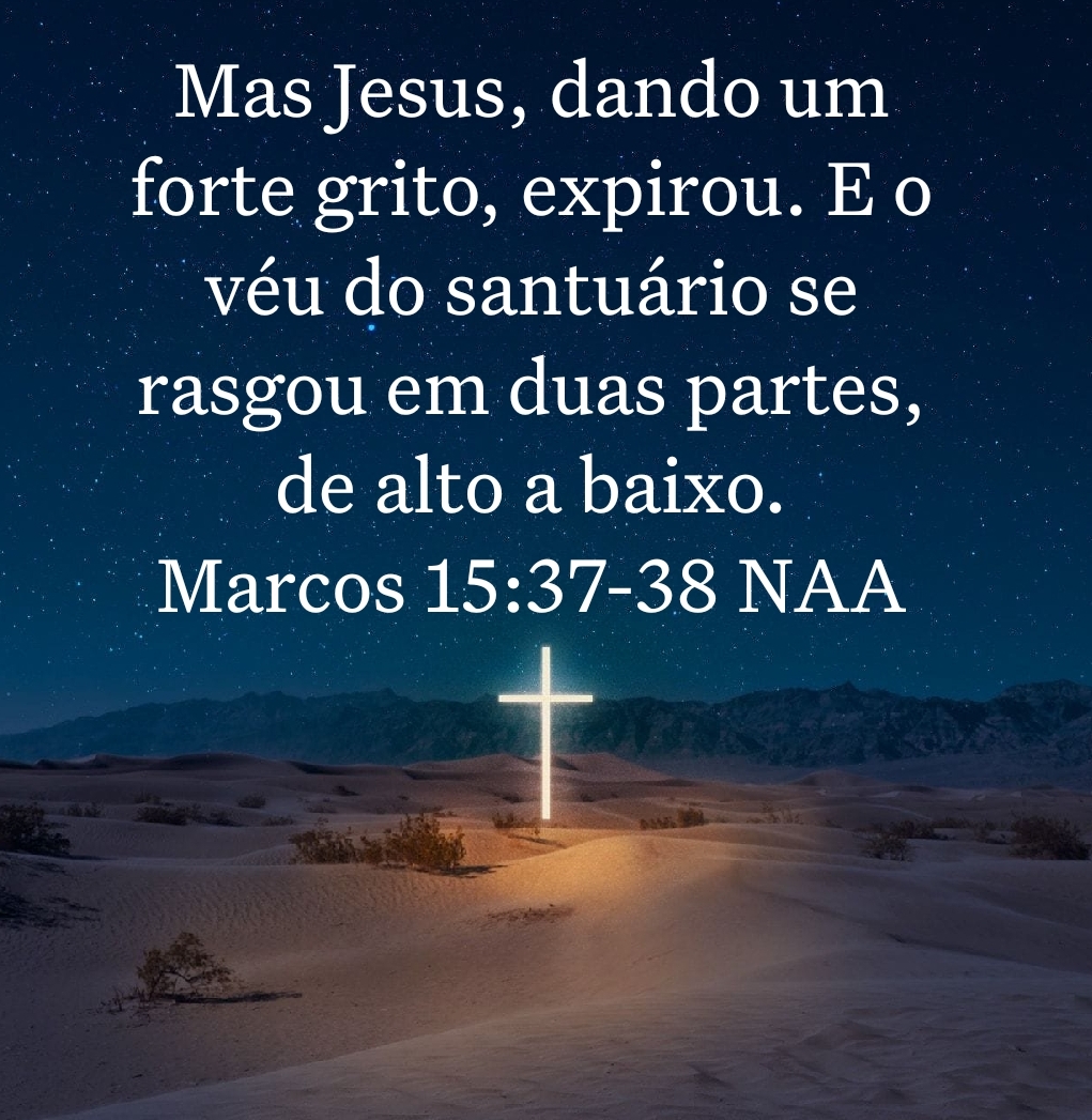 Mas Jesus, dando um forte grito, expirou. E o véu do santuário se rasgou em duas partes, de alto a baixo. Marcos 15:37-38 NAA