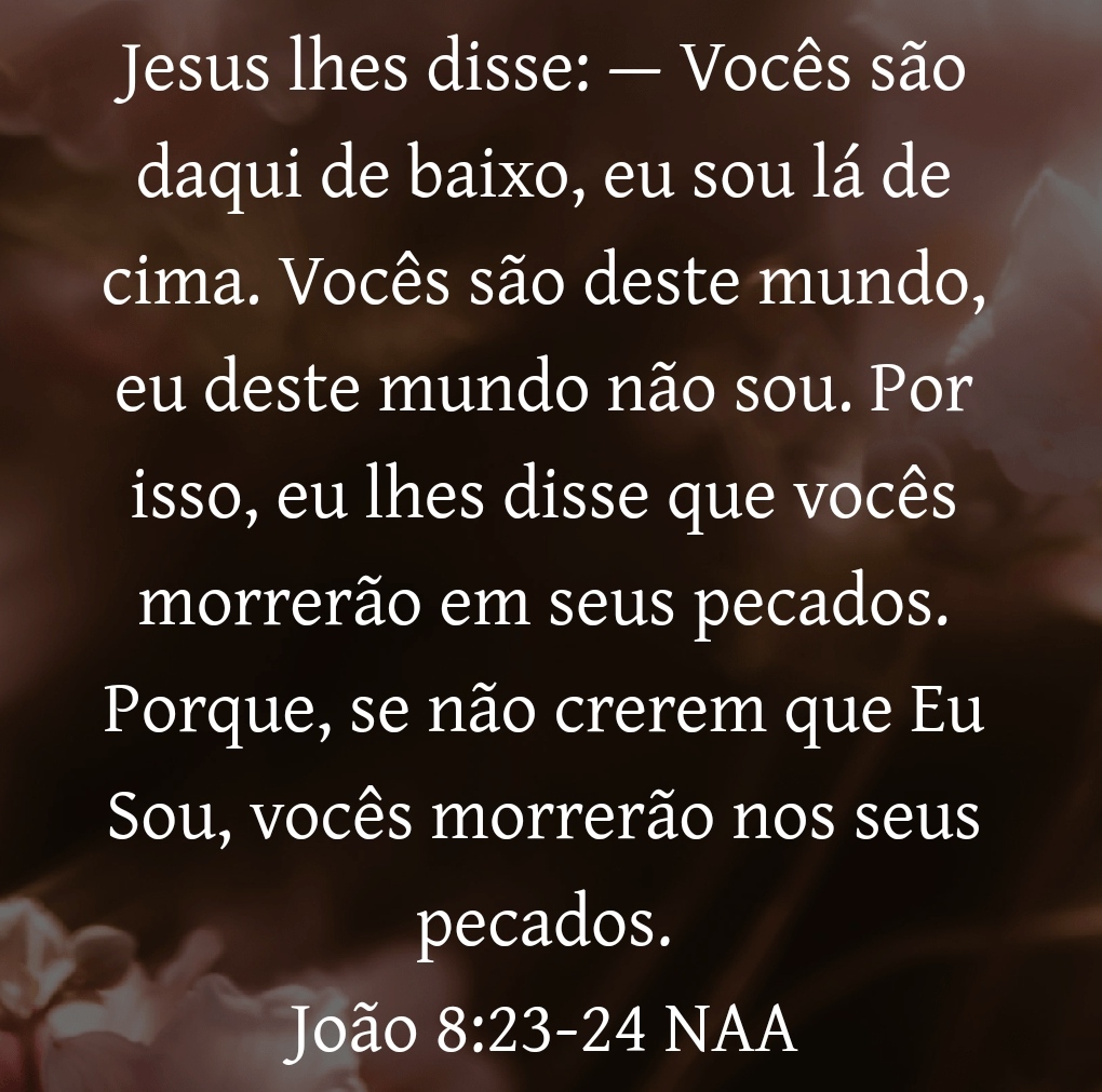 Jesus disse: — Se Deus fosse, de fato o pai de vocês, certamente me amariam, porque eu vim de Deus e aqui estou; pois não vim de mim mesmo, mas ele me enviou. João 8:42 NAA