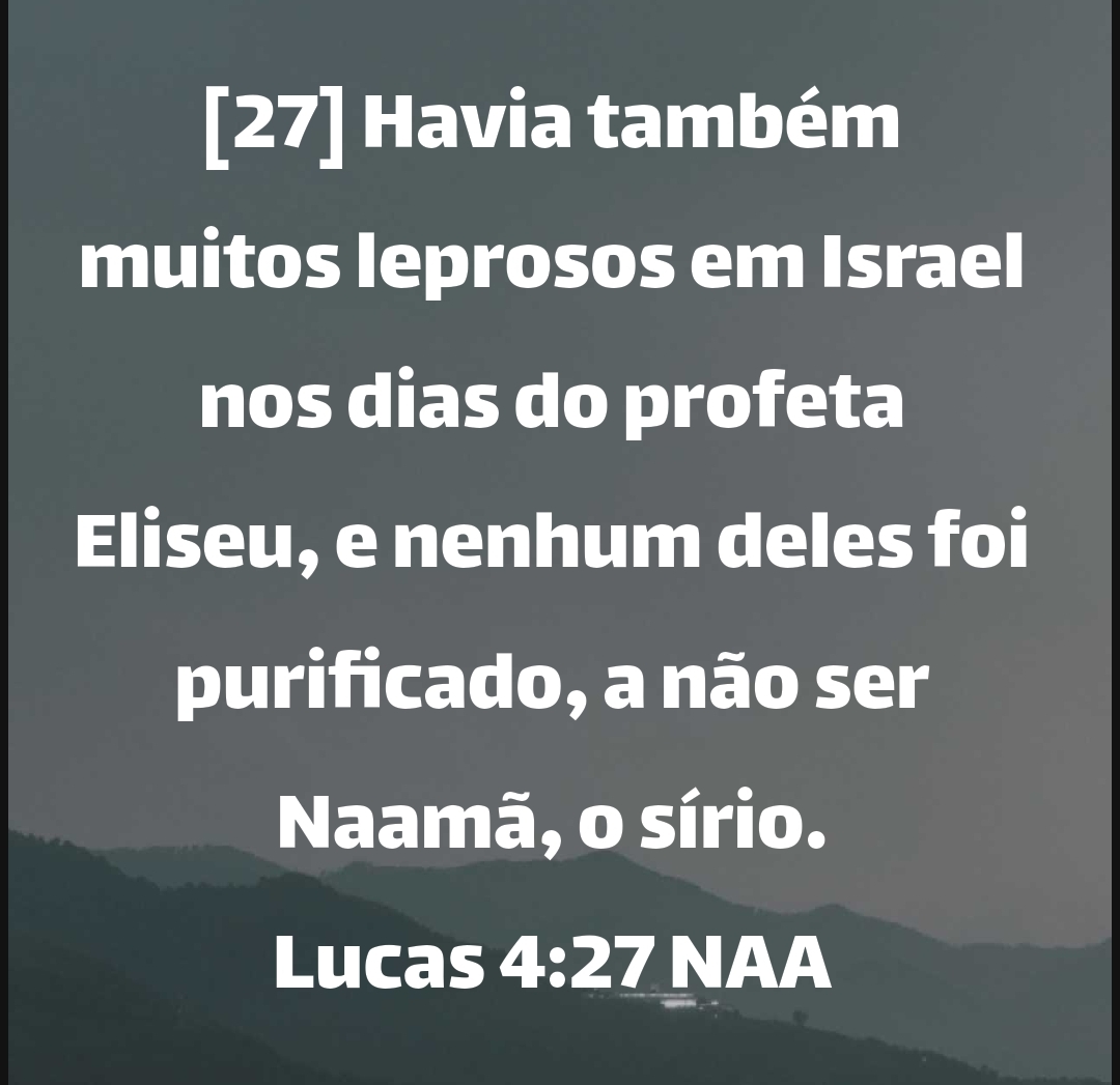 [27] Havia também muitos leprosos em Israel nos dias do profeta Eliseu, e nenhum deles foi purificado, a não ser Naamã, o sírio.