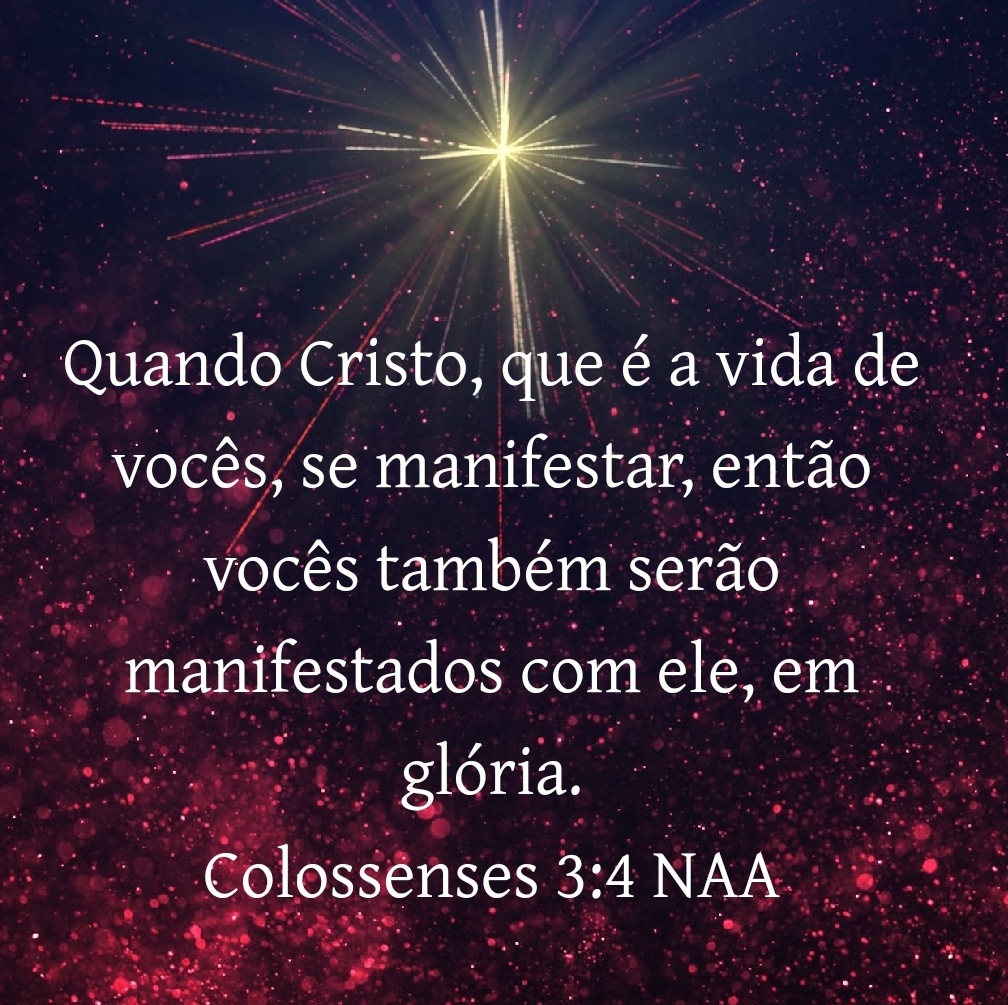 ‭‭Quando Cristo, que é a vida de vocês, se manifestar, então vocês também serão manifestados com ele, em glória. Colossenses‬ ‭3:4‬ ‭NAA‬‬