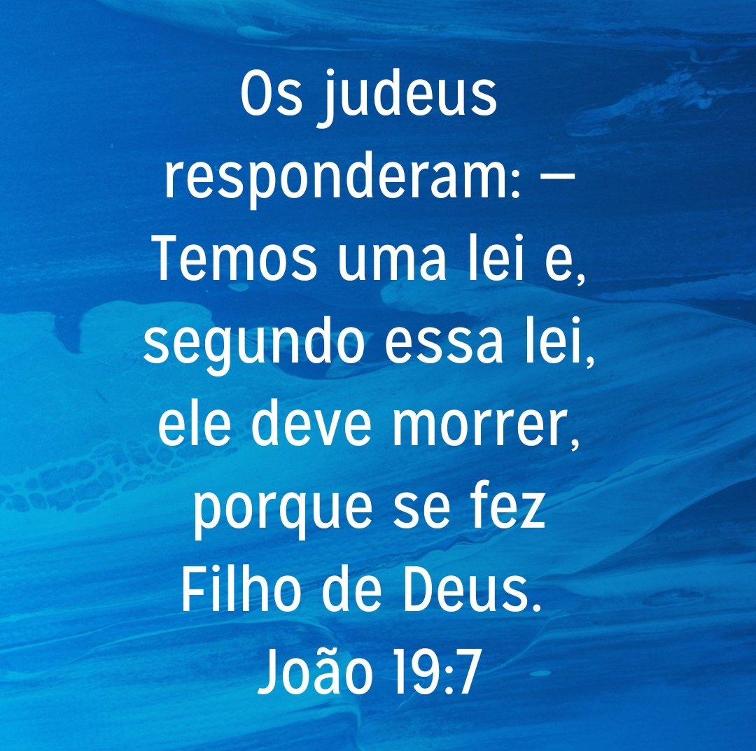 Os judeus responderam: — Temos uma lei e, segundo essa lei, ele deve morrer, porque se fez Filho de Deus.