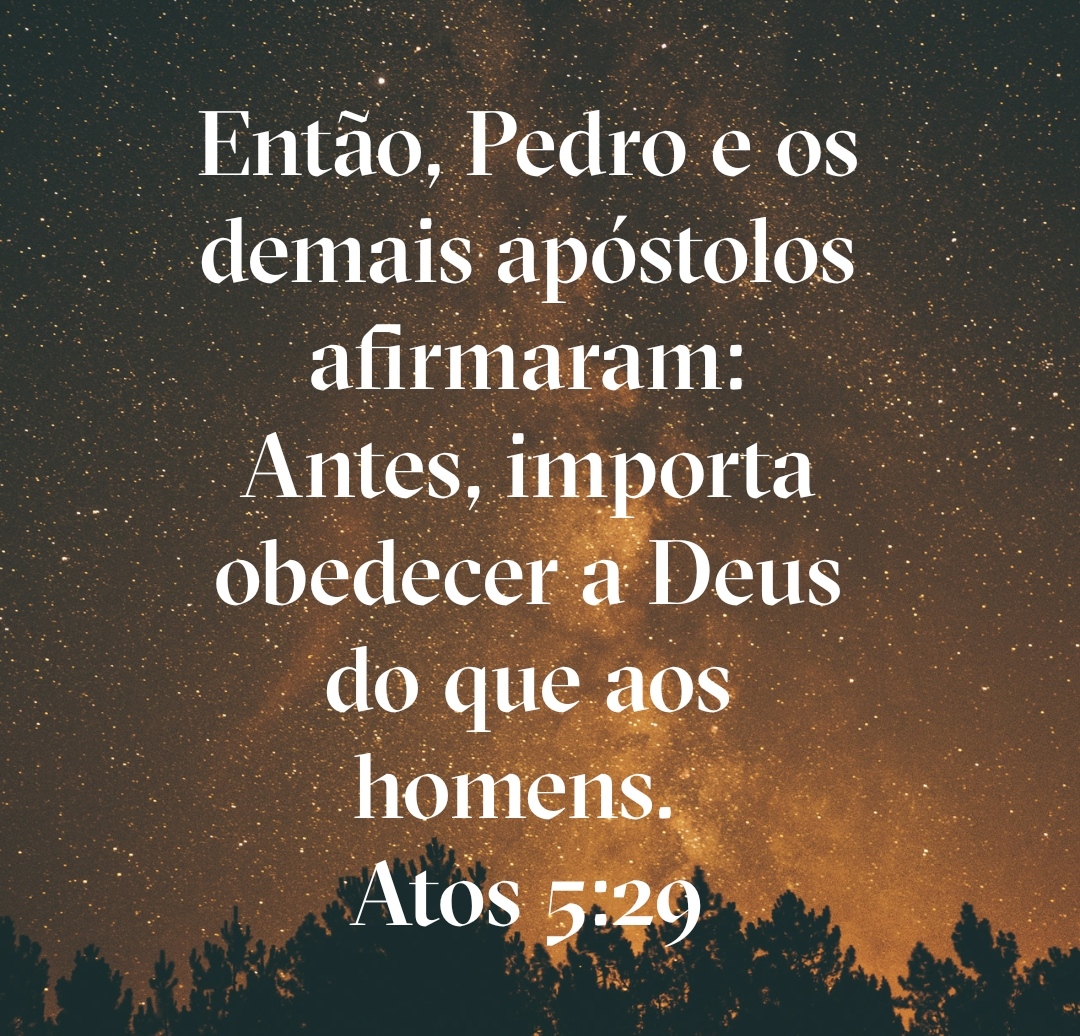 Então, Pedro e os demais apóstolos afirmaram: Antes, importa obedecer a Deus do que aos homens.