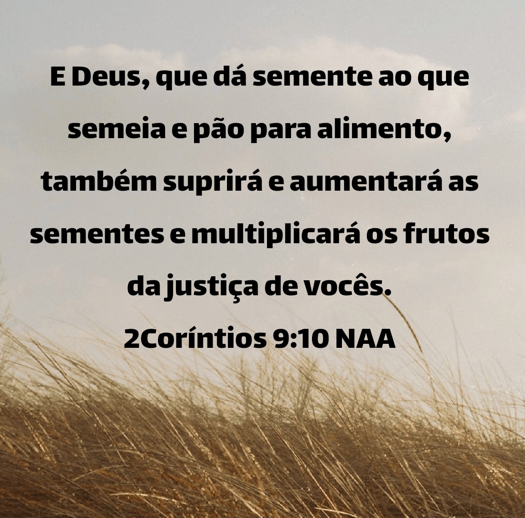 E Deus, que dá semente ao que semeia e pão para alimento, também suprirá e aumentará as sementes e multiplicará os frutos da justiça de vocês. 2Coríntios 9:10 NAA