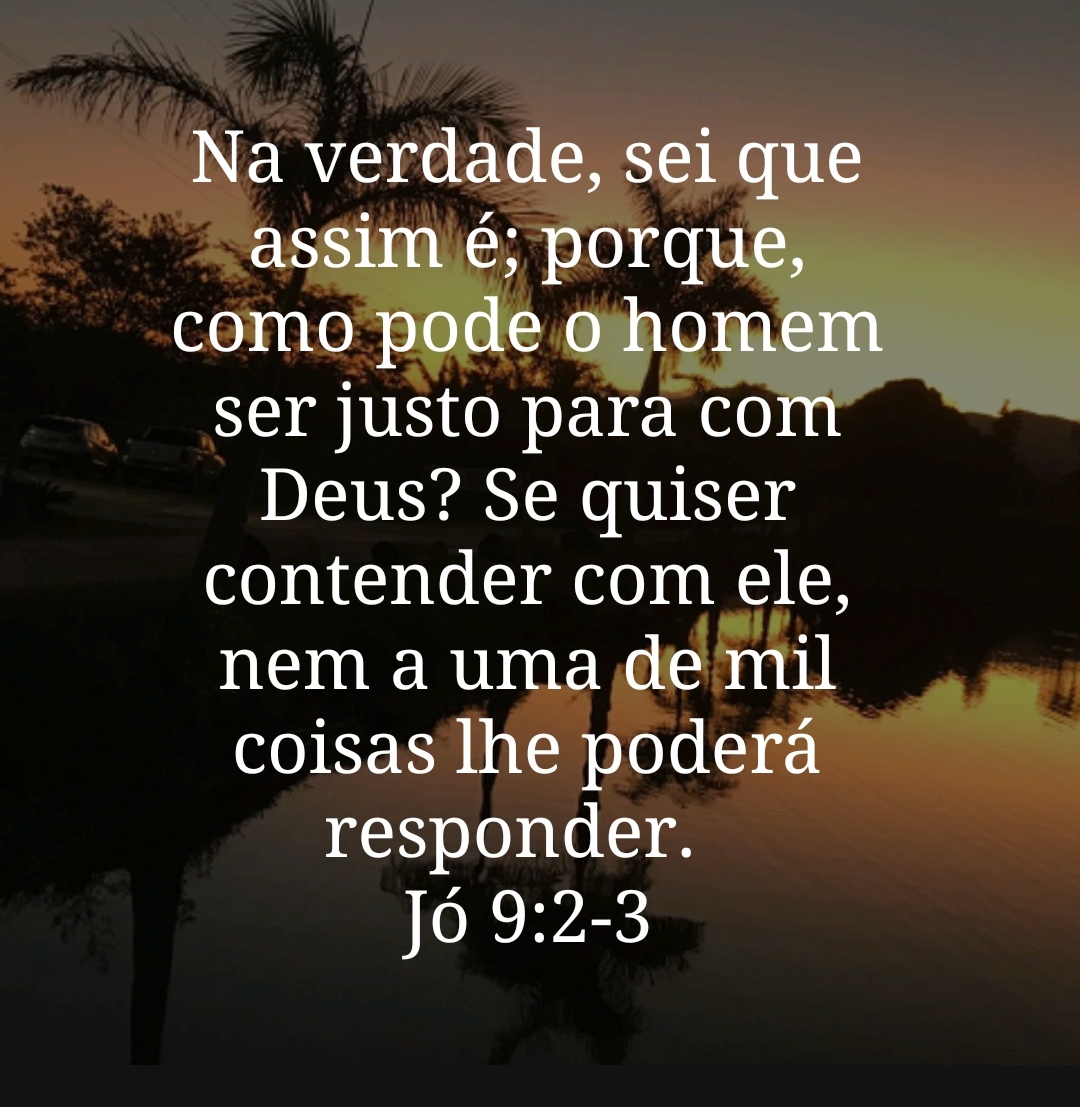 Na verdade, sei que assim é; porque, como pode o homem ser justo para com Deus? Se quiser contender com ele, nem a uma de mil coisas lhe poderá responder.