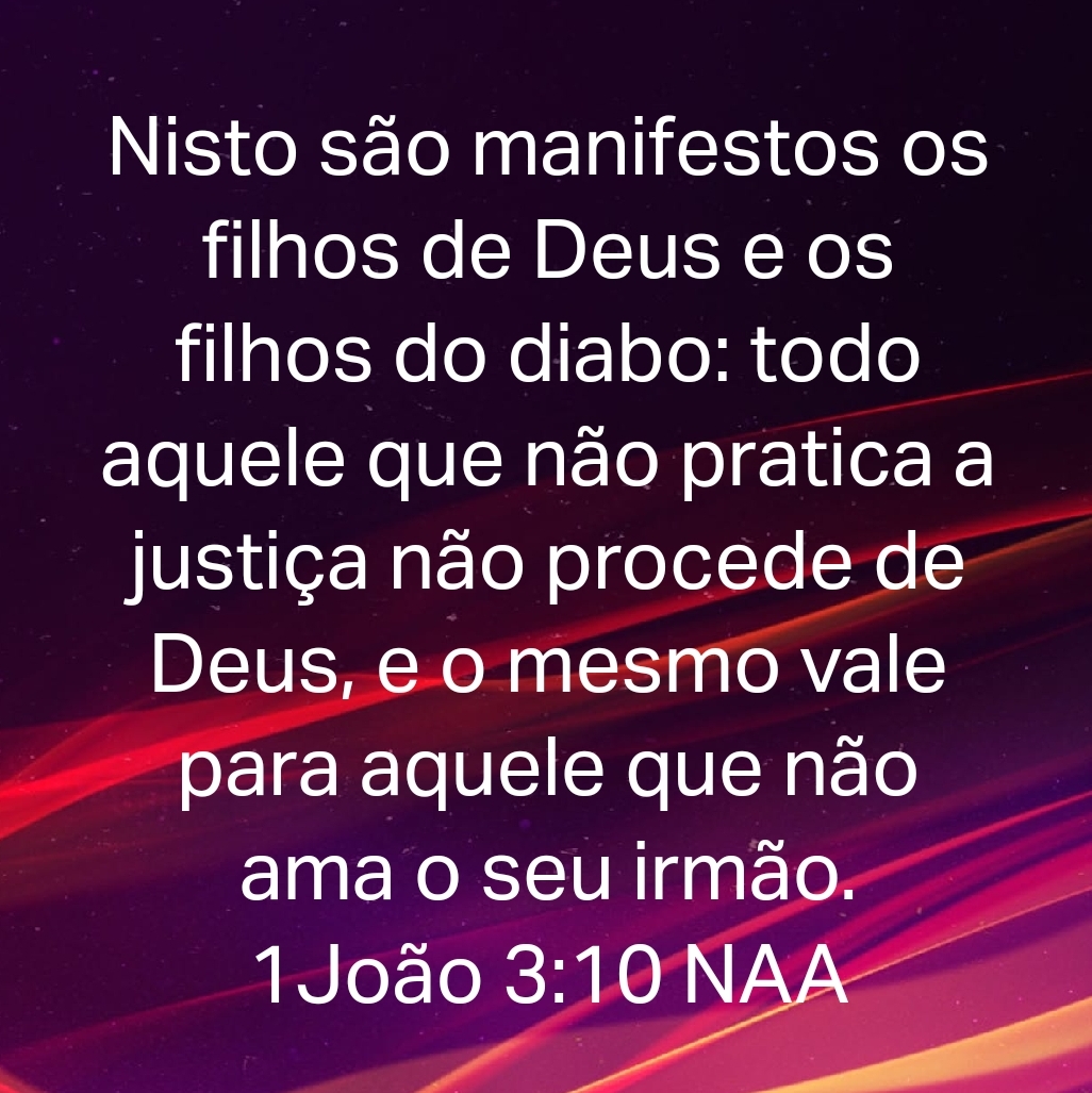 Nisto são manifestos os filhos de Deus e os filhos do diabo: todo aquele que não pratica a justiça não procede de Deus, e o mesmo vale para aquele que não ama o seu irmão. 1João 3:10 NAA