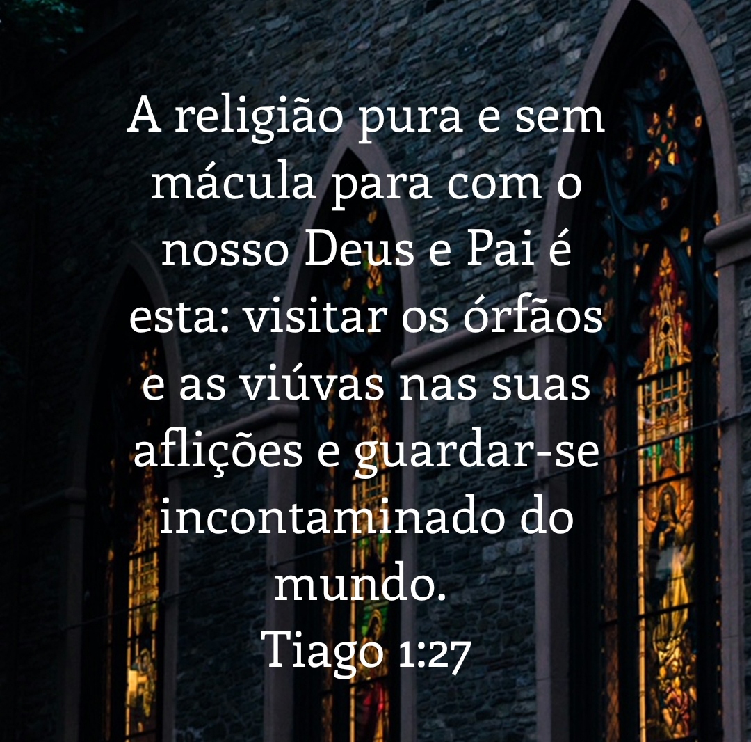 A religião pura e sem mácula para com o nosso Deus e Pai é esta: visitar os órfãos e as viúvas nas suas aflições e guardar-se incontaminado do mundo.