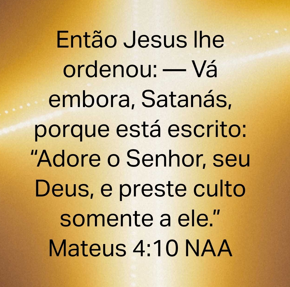 Então Jesus lhe ordenou: — Vá embora, Satanás, porque está escrito: “Adore o Senhor, seu Deus, e preste culto somente a ele.” Mateus 4:10 NAA