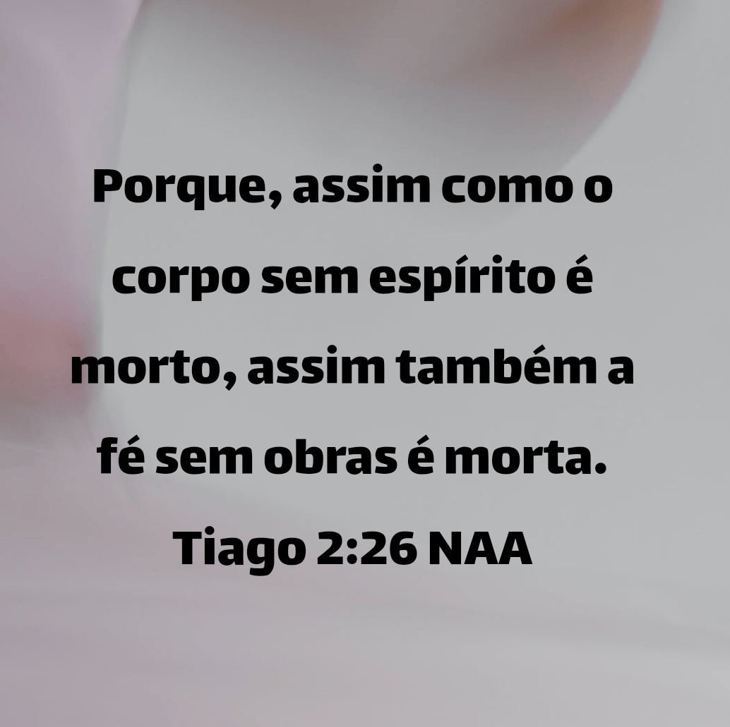 Porque, assim como o corpo sem espírito é morto, assim também a fé sem obras é morta. Tiago 2:26 NAA