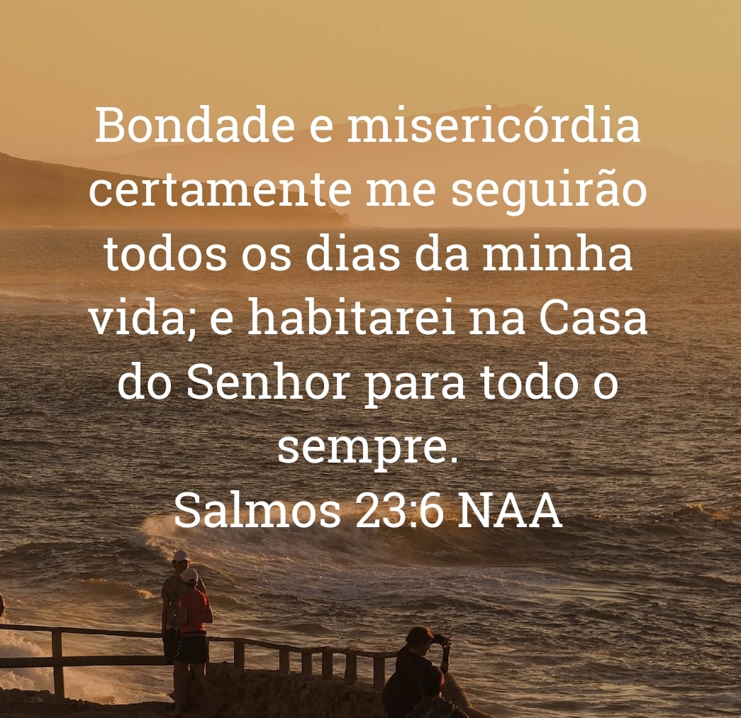 Bondade e misericórdia certamente me seguirão todos os dias da minha vida; e habitarei na Casa do Senhor para todo o sempre. Salmos 23:6 NAA