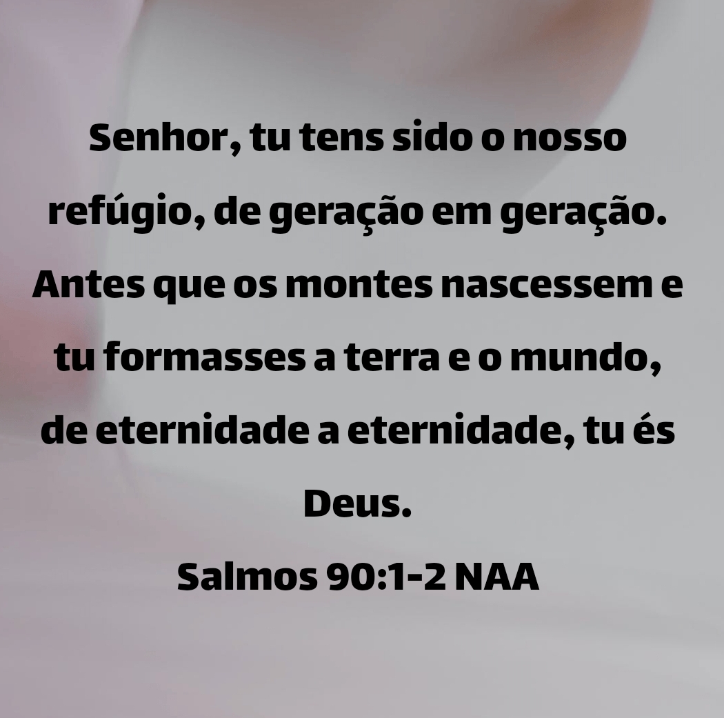 Senhor, tu tens sido o nosso refúgio, de geração em geração. Antes que os montes nascessem e tu formasses a terra e o mundo, de eternidade a eternidade, tu és Deus. Salmos 90:1-2 NAA