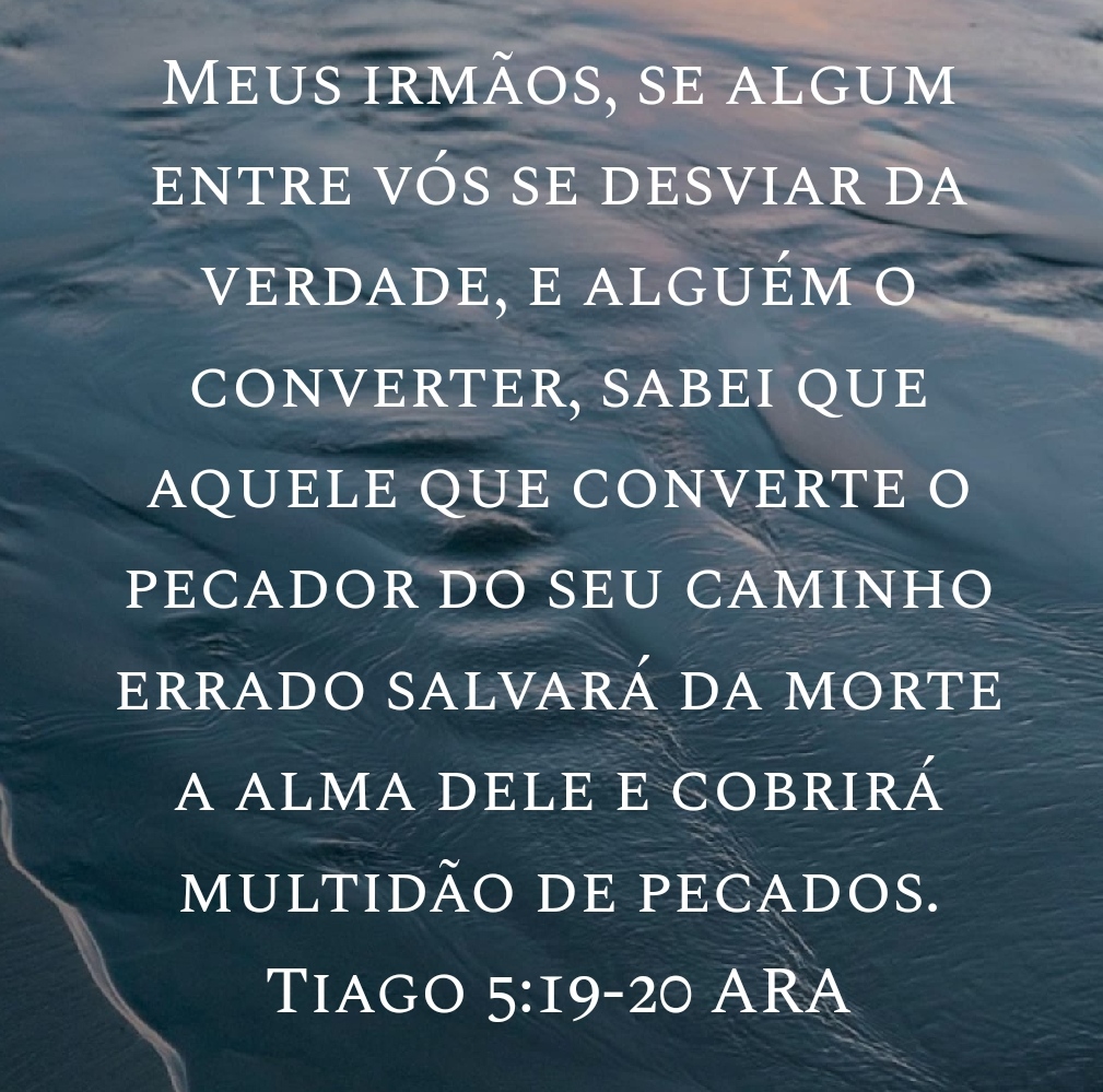 Meus irmãos, se algum entre vós se desviar da verdade, e alguém o converter, sabei que aquele que converte o pecador do seu caminho errado salvará da morte a alma dele e cobrirá multidão de pecados. Tiago 5:19-20 ARA