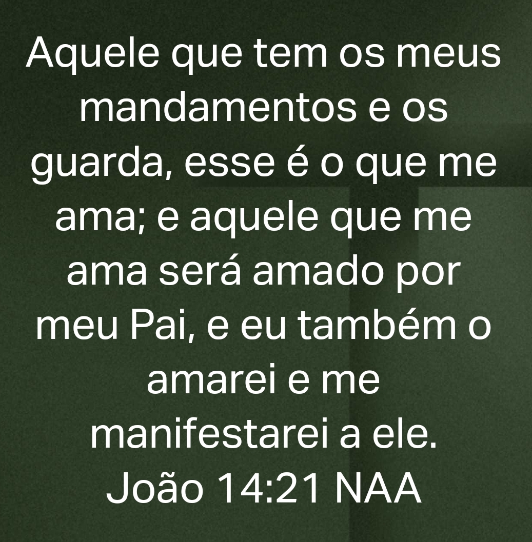 Aquele que tem os meus mandamentos e os guarda, esse é o que me ama; e aquele que me ama será amado por meu Pai, e eu também o amarei e me manifestarei a ele. João 14:21 NAA
