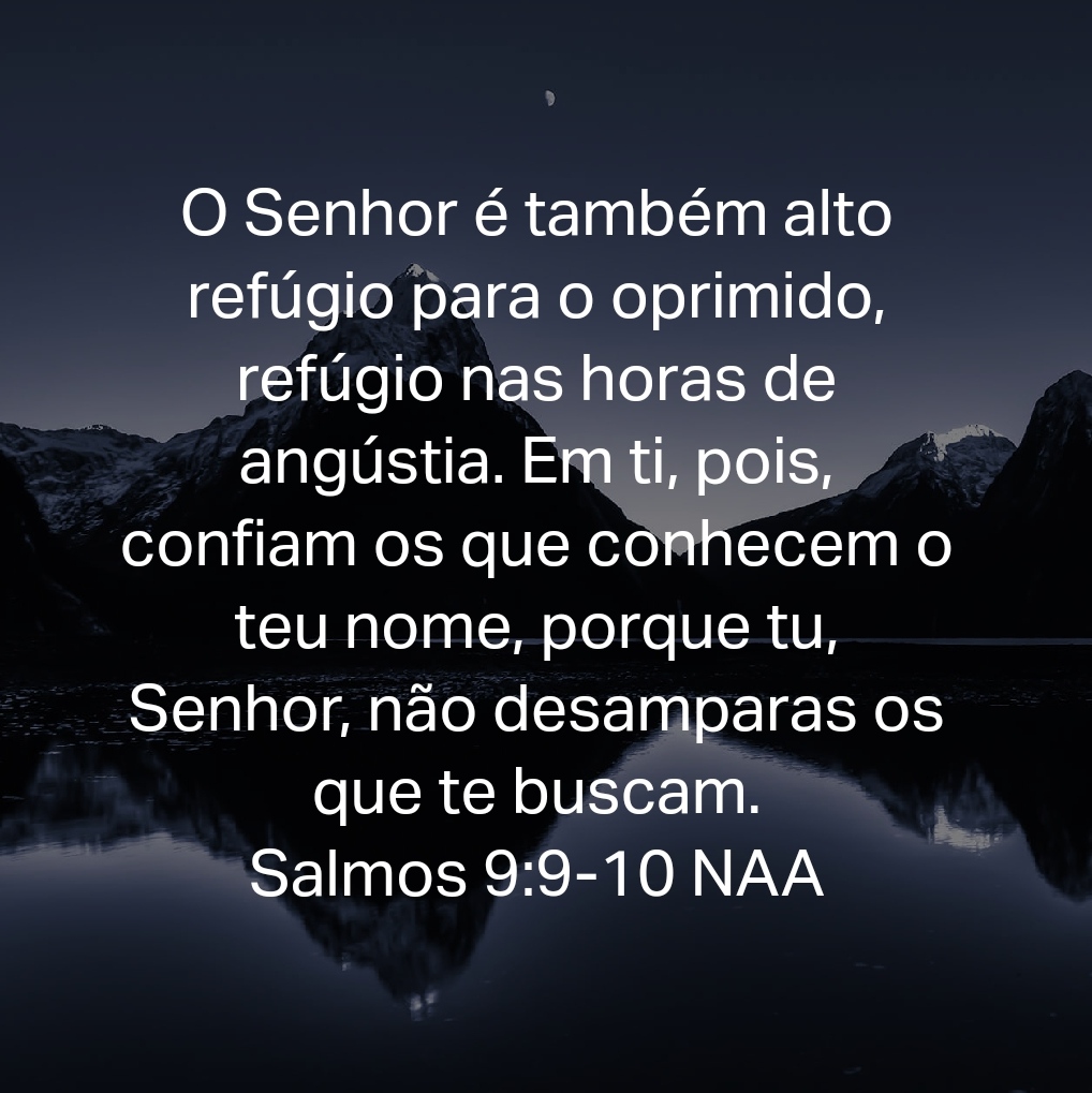 O Senhor é também alto refúgio para o oprimido, refúgio nas horas de angústia. Em ti, pois, confiam os que conhecem o teu nome, porque tu, Senhor, não desamparas os que te buscam. Salmos 9:9-10 NAA