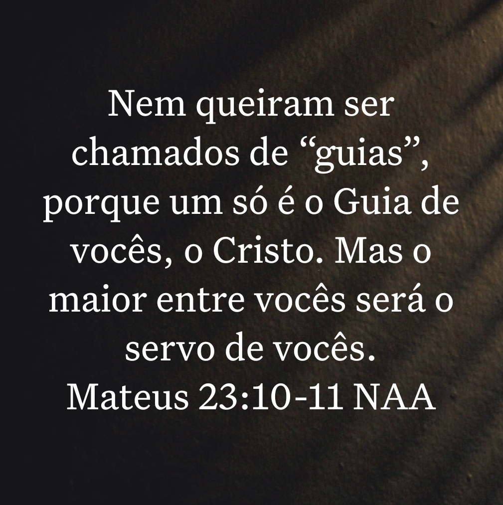Nem queiram ser chamados de “guias”, porque um só é o Guia de vocês, o Cristo. Mas o maior entre vocês será o servo de vocês. Mateus 23:10-11 NAA