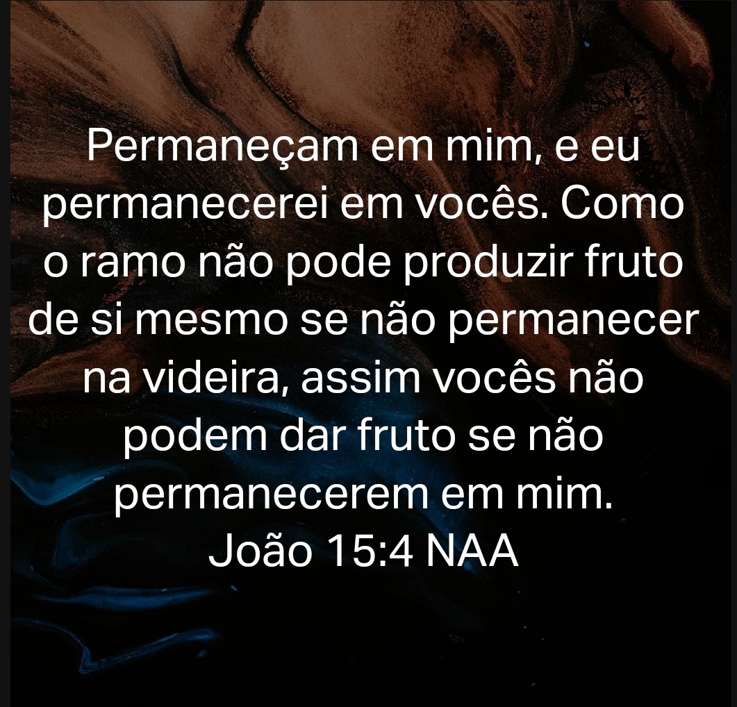 Permaneçam em mim, e eu permanecerei em vocês. Como o ramo não pode produzir fruto de si mesmo se não permanecer na videira, assim vocês não podem dar fruto se não permanecerem em mim. João 15:4 NAA